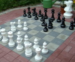 Königshöhe 31 cm, Dame 28 cm, Läufer 25 cm, Springer 22 cm, Turm 20 cm, Bauer 20 cm